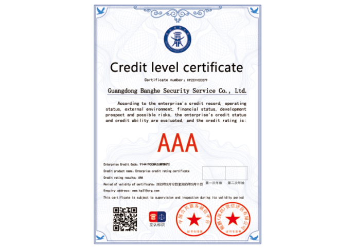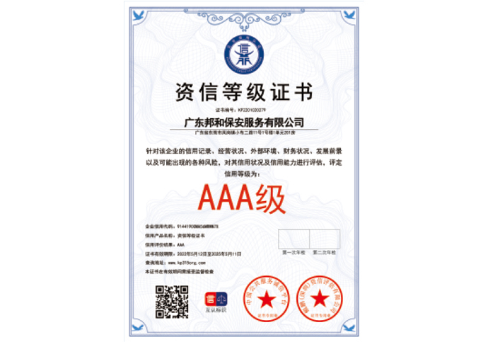 AAA级资信等级证书