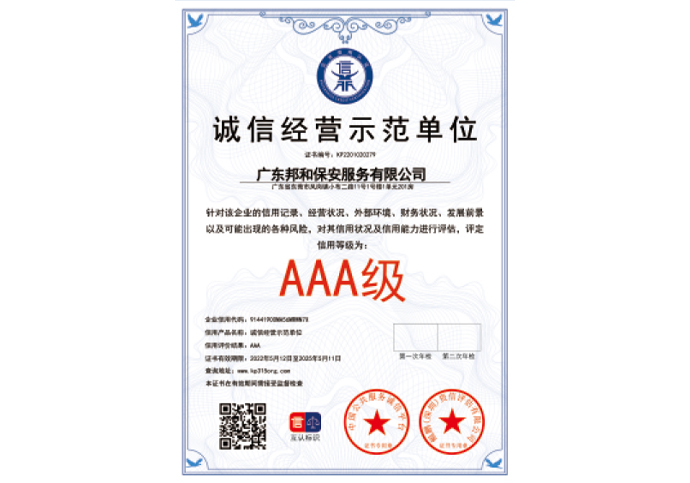 AAA级诚信经营示范单位