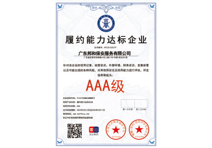 AAA级履约能力达标企业