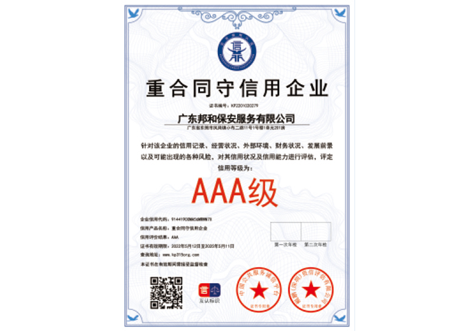 AAA级重合同守信用企业